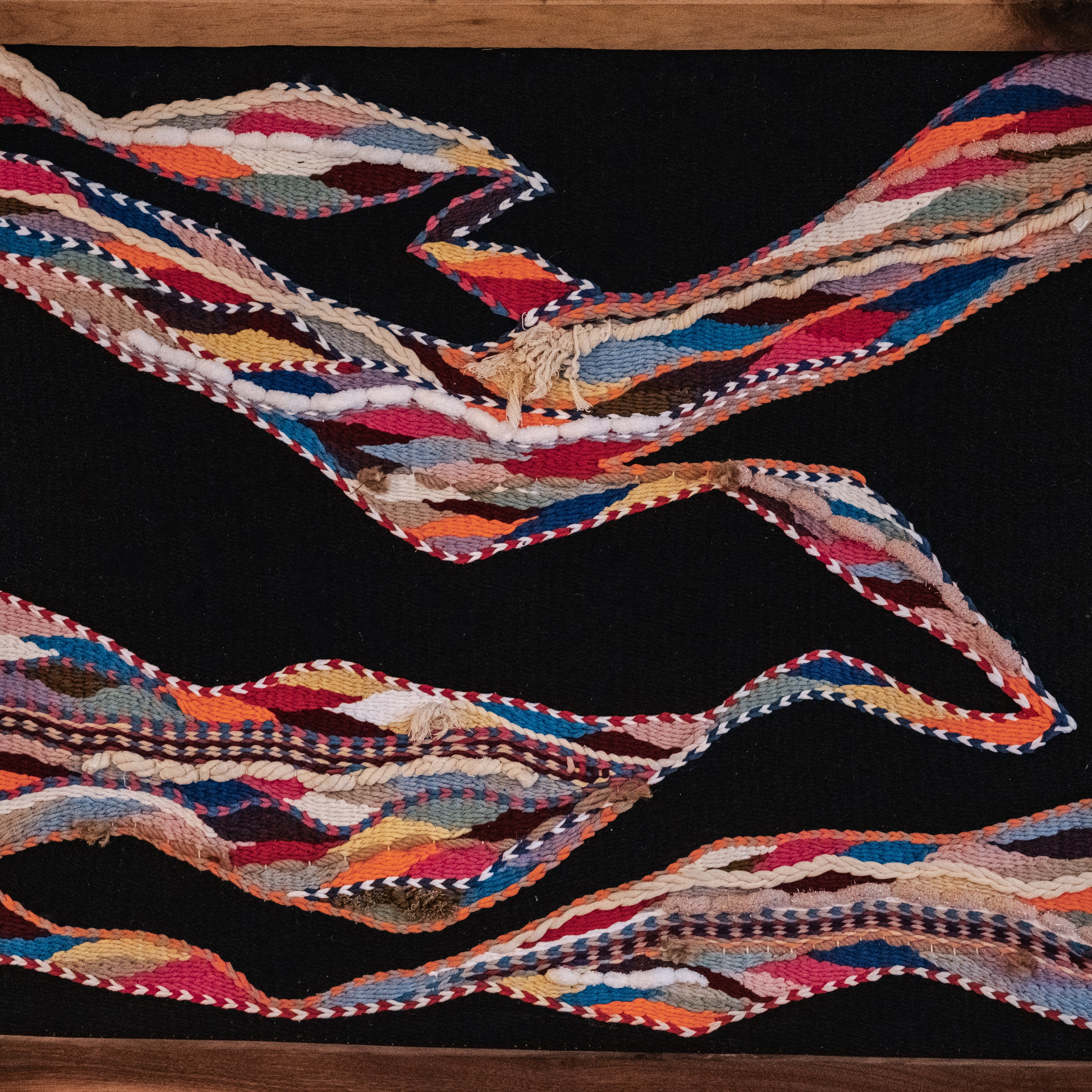 Handwoven Wall Tapestry in Black, Red, and Multi-Color Accents
