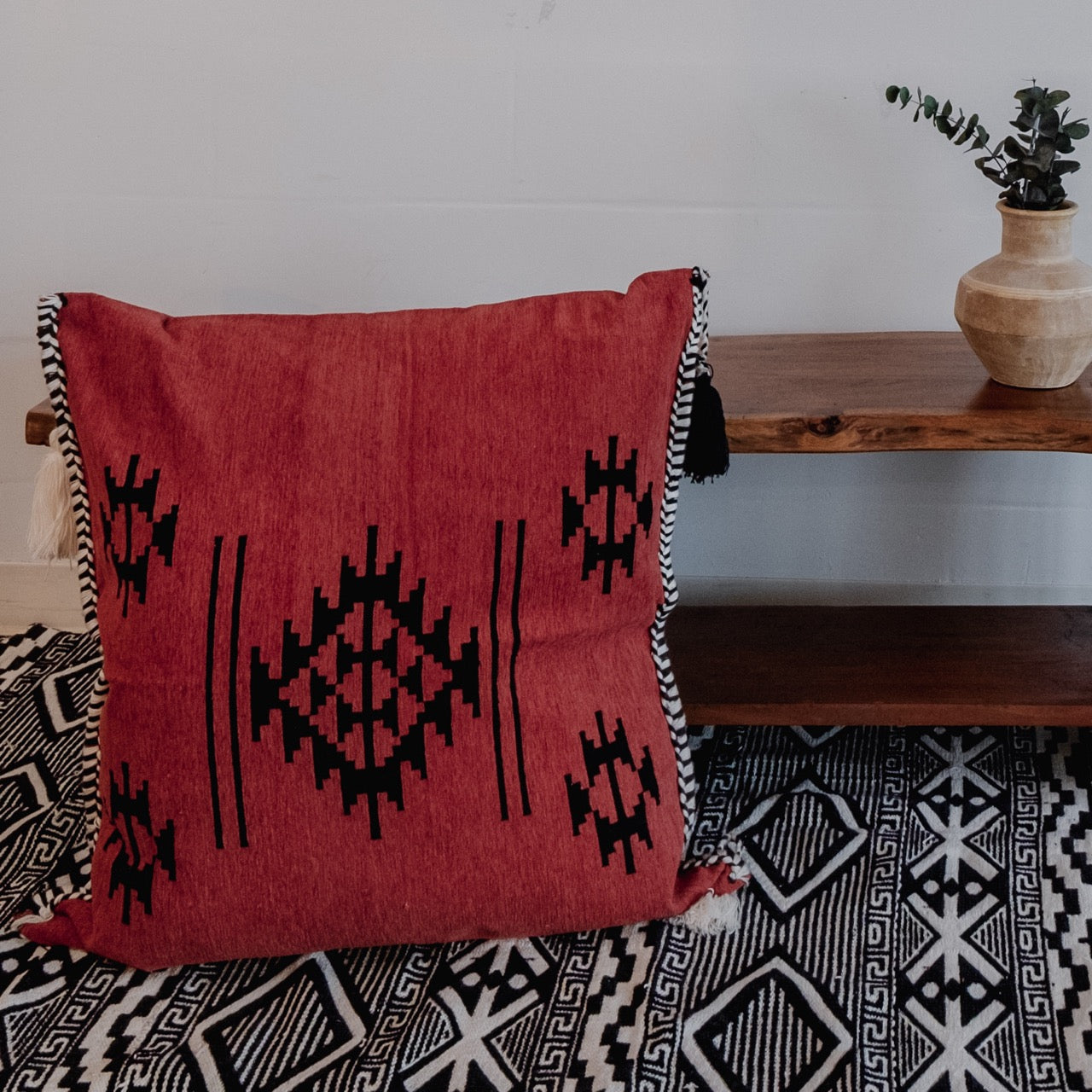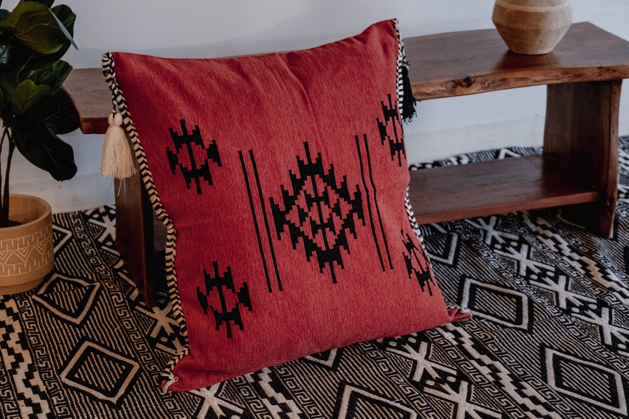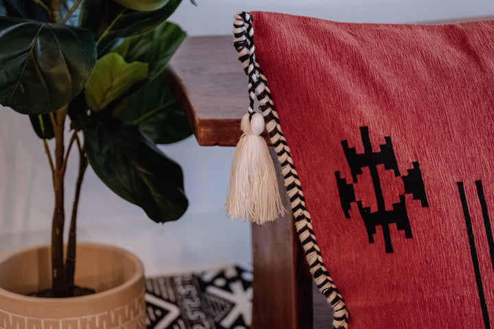Handwoven Pillow Case in Red, Black, and White