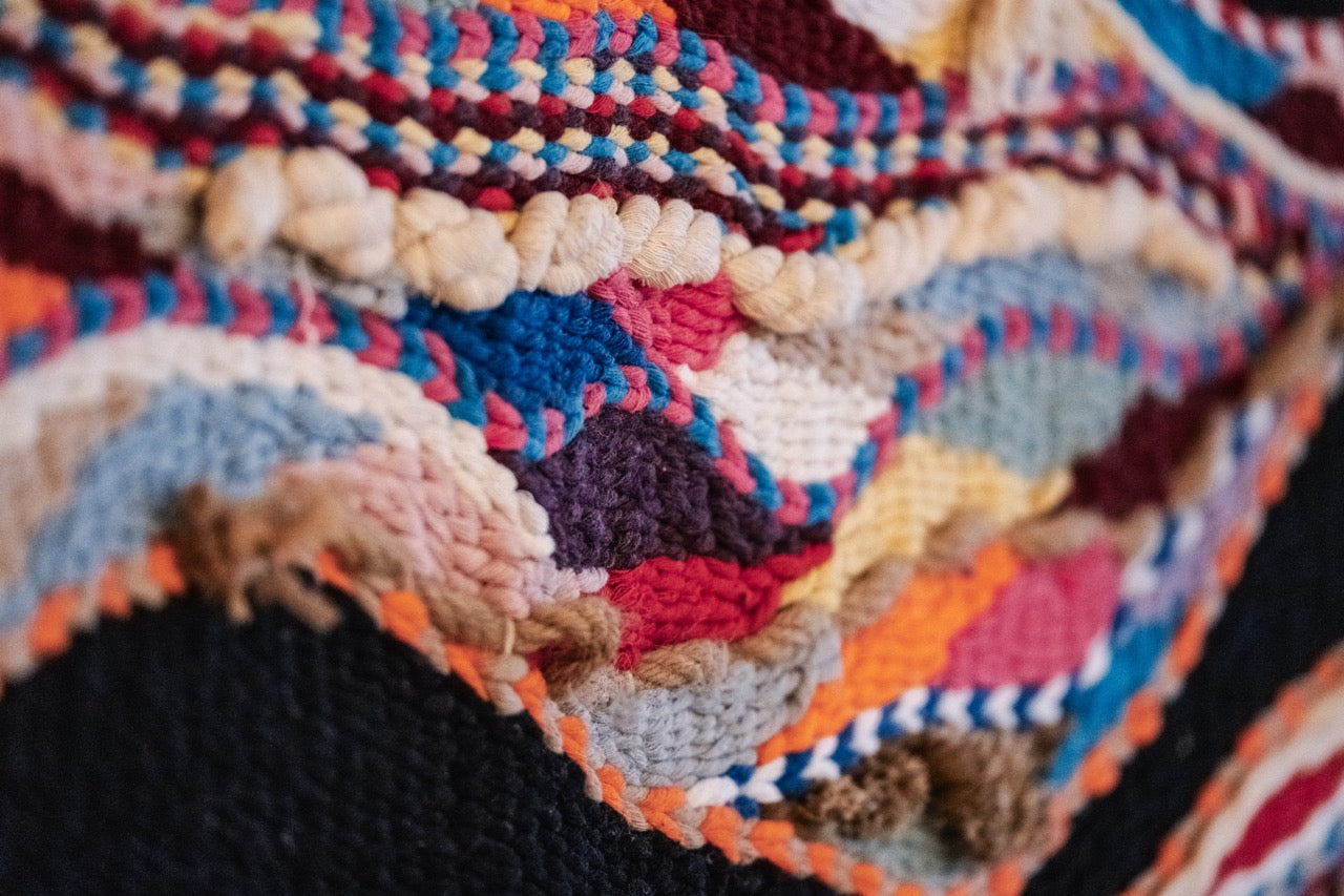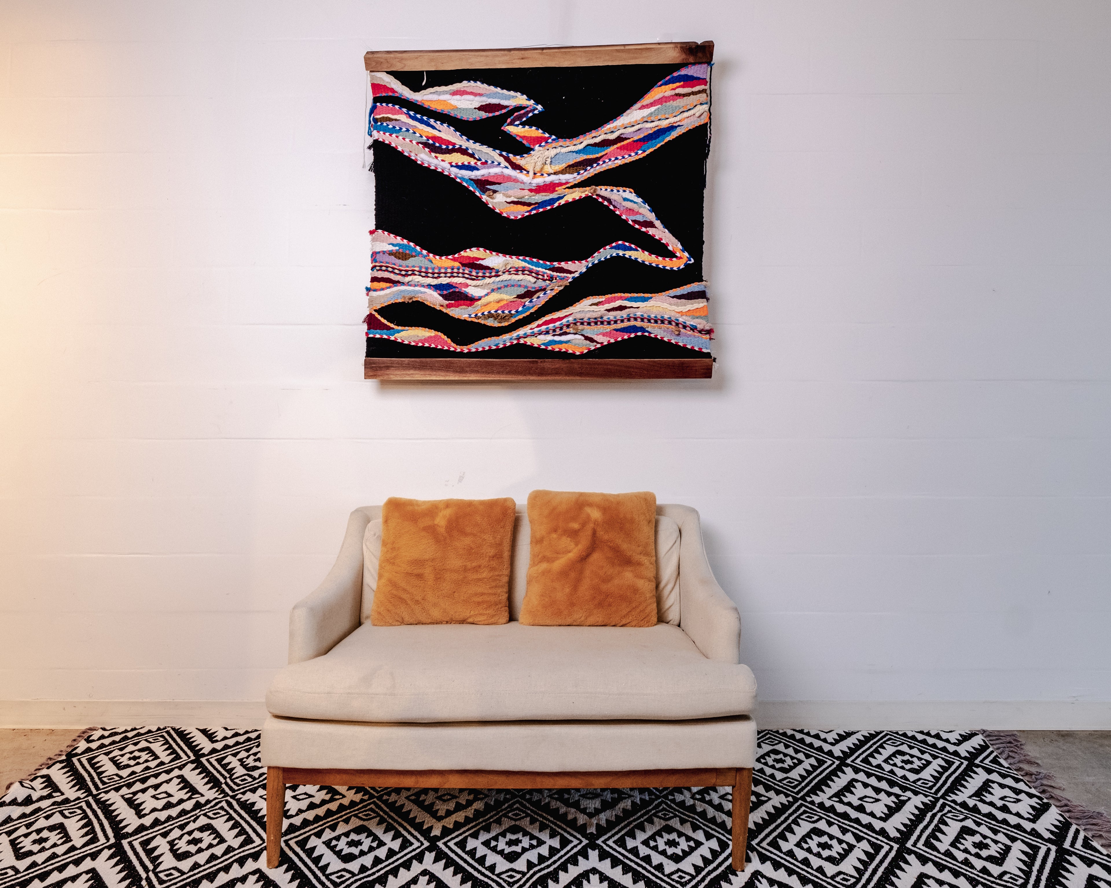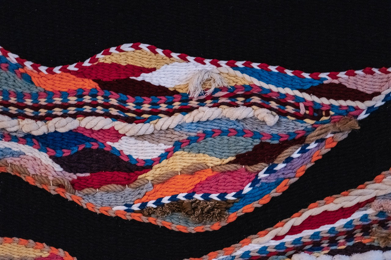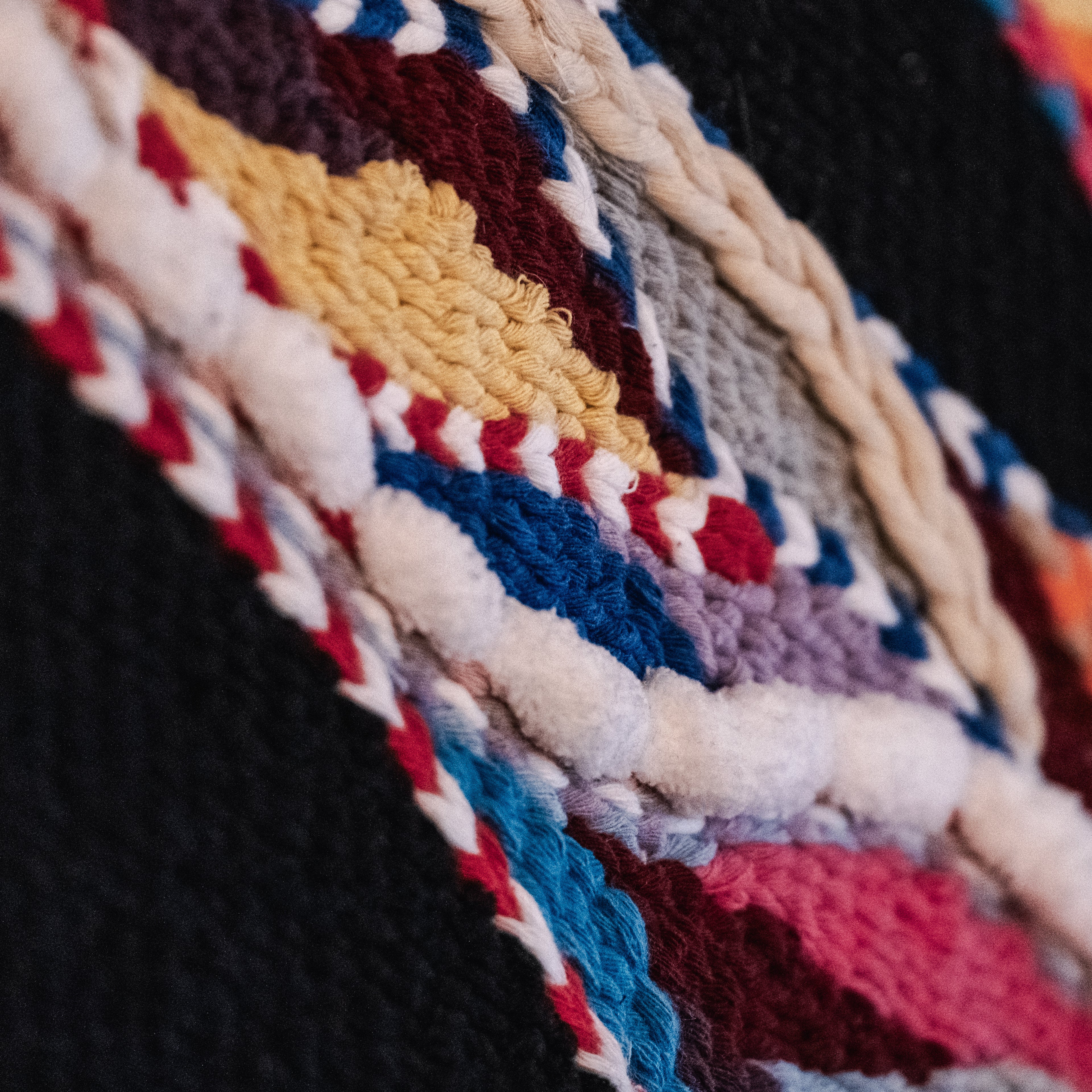 Handwoven Wall Tapestry in Black, Red, and Multi-Color Accents