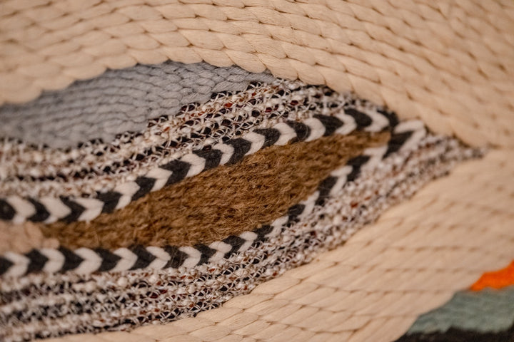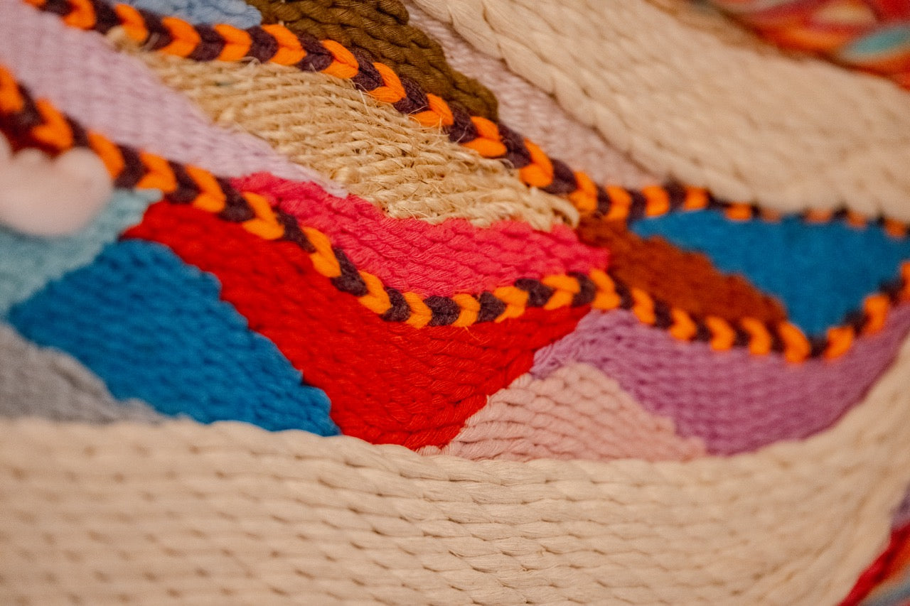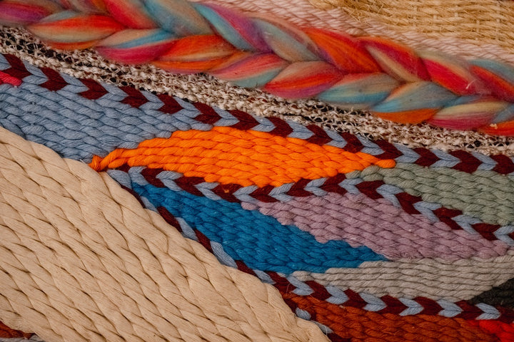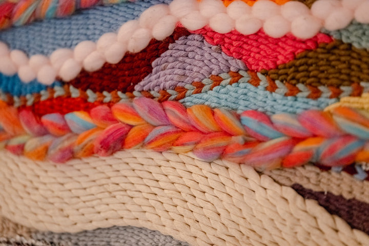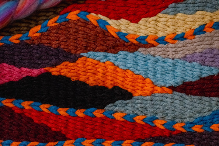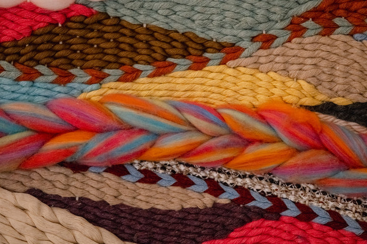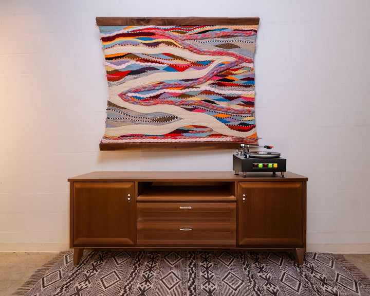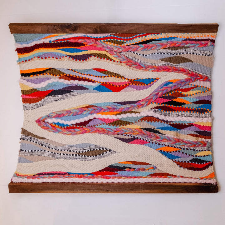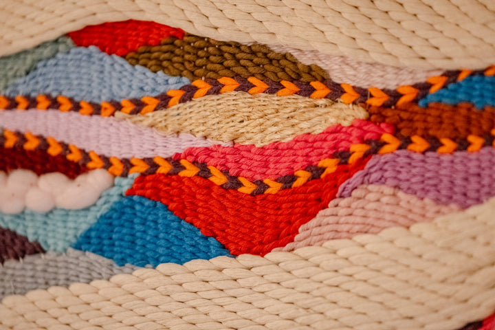 Handwoven Wall Tapestry in Cream, Red, and Multi-Color Highlights
