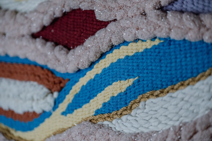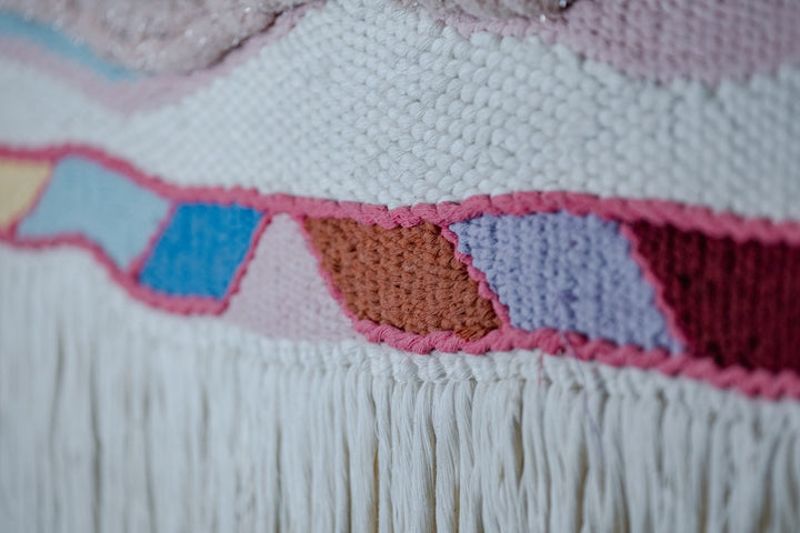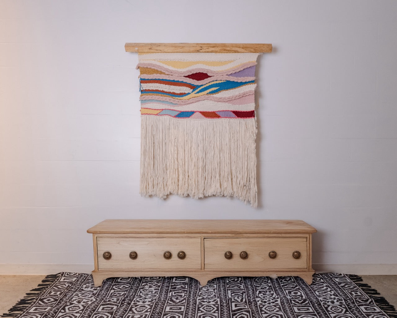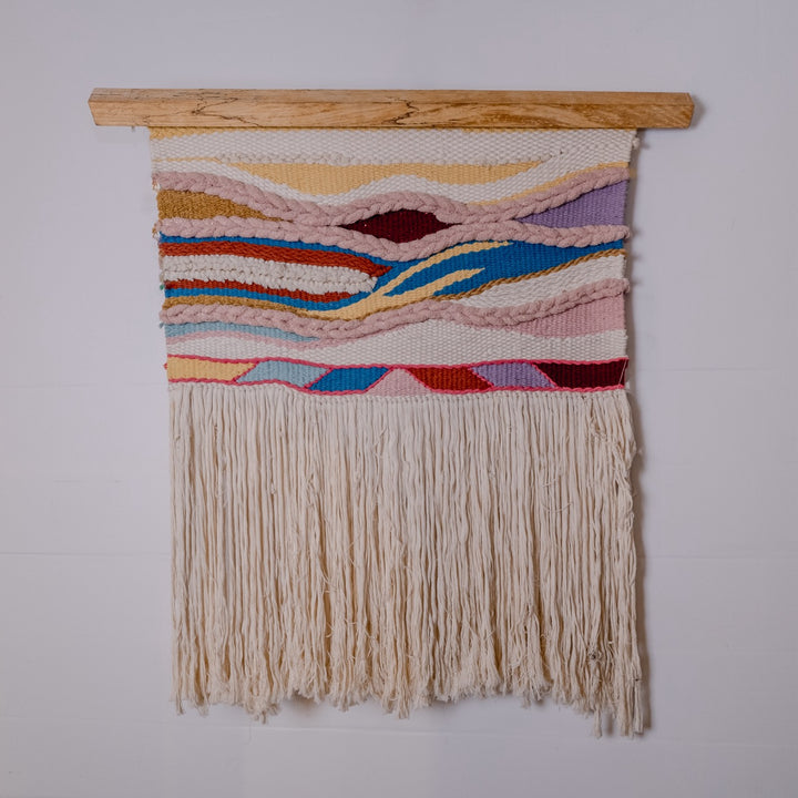 Handwoven Wall Tapestry in Neutral Tones and Vibrant Accents